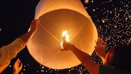 Kennen jullie het fenomeen wensballonnen? Het is een lampion van papier dat op dezelfde manier werkt als de hete luchtballon. De lucht in de ballon wordt verwarmd door een open vlam die onderin de ballon hangt. Als de vlam groot genoeg is zal de papieren ballon opstijgen. In Nederland noemen we het voornamelijk een wensballon…